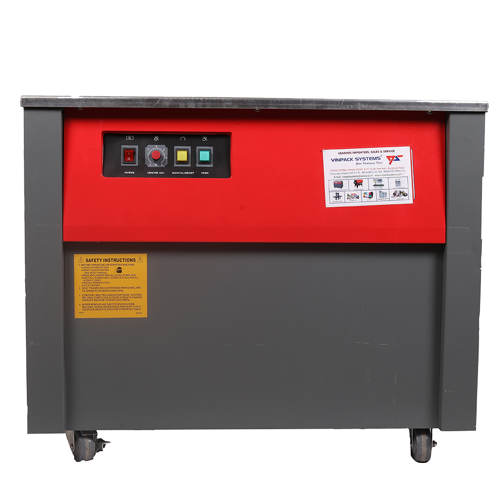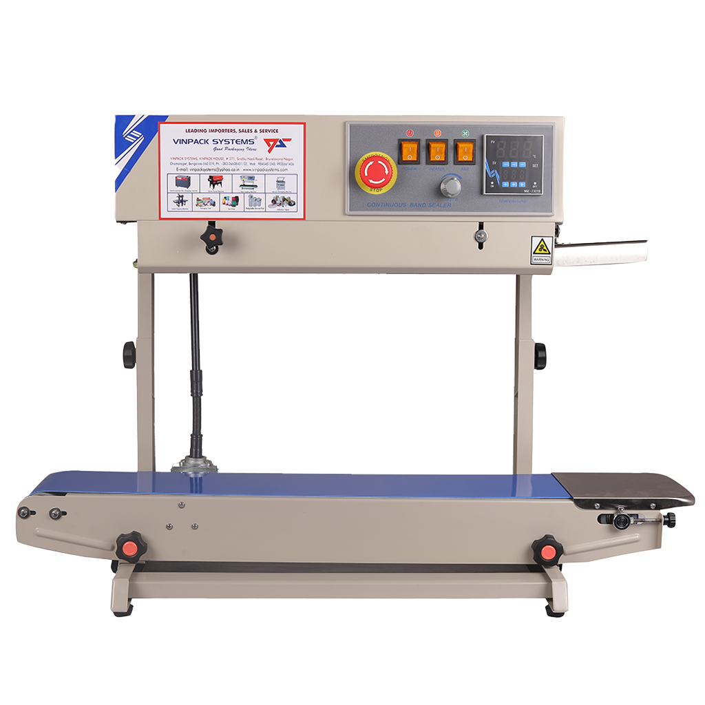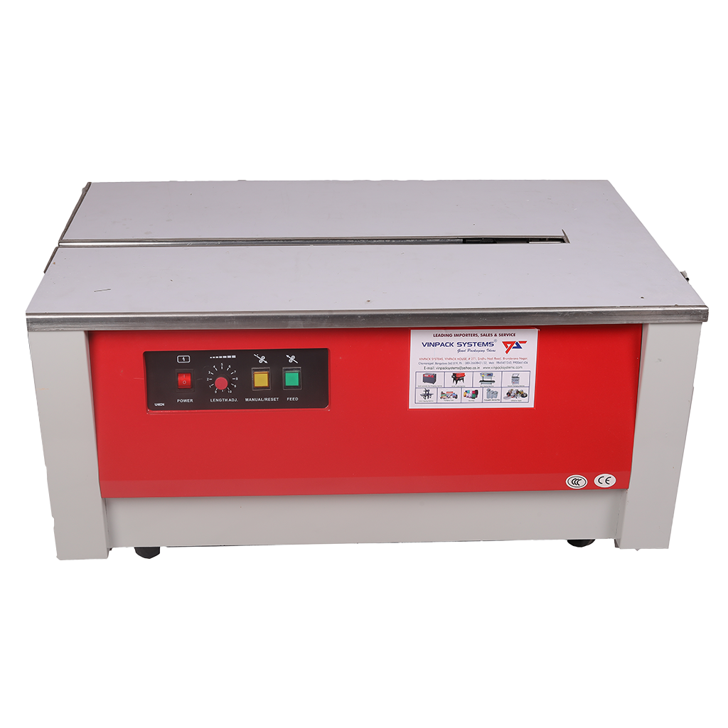 Packaging Machine Packaging Materials Packing Tools PACKAGING MACHINES SEMI-AUTOMATIC STRAPPING MACHINE VPS-306HD View Product VPS-306FT View Product VPS-900X View Product VPS-316H View Product VPS-306HDL View Product CONTINIOUS BAND SEALING MACHINE FRB-77011 M/S View Product FRB-7701 M/S View Product FRB-77011 SS View Product FRB-7701 SS View Product SHRINK TUNNEL BS-4535 View Product BS-4525 View Product BS-2020 Mini Shrink Tunnel View Product L - SEALER PlainL-Sealer View Product Semi-Automatic L-SealerwithPowertake off Conveyor View Product CARTON TAPING MACHINE FXJ-6050 View Product VACCUM PACKING MACHINE 500 DZ View Product 600 DZ View Product SEMI-AUTOMATIC STRECH WRAPPING MACHINE DBC - 800S View Product PACKAGING MATERIALS & TOOLS SEMI-AUTOMATIC STRAPPING MACHINE Model : VPS-306H Specification Power Supply : Single Phase, 220V, 50Hz Driving Motor : ¼ HP, 220V 200W Dimensions : 910(l) x 590(w) x 730mm (h) Strap Width : 6mm, 9mm, 12mm & 15mm Strapping Speed : 1.5 sec/strap Min. Package Size : 60mm Max. Package Size : Any Size Weight : 100 Kg Sealing Method : Heat Sealing Also available special applicaiton models with low height, ball bearing top, SS body, etc. Call To Buy Now SEMI-AUTOMATIC STRAPPING MACHINE Model : VPS-306H Call To Buy Now Specification Power Supply : Single Phase, 220V, 50HzDriving Motor : ¼ HP, 220V 200WDimensions : 910(l) x 590(w) x 730mm (h)Strap Width : 6mm, 9mm, 12mm & 15mmStrapping Speed : 1.5 sec/strapMin. Package Size : 60mmMax. Package Size : Any SizeWeight : 100 KgSealing Method : Heat Sealing FULLY AUTOMATIC STRAPPING MACHINE Specification Power Supply : 3 Phase, 415V, 50HzArch Size : W 850 x H 600 (Standard)Strap Width : 9mm, 12mm, 15mm, 19mmStrap Tension : Max. 90 Kgs.Stapping Speed : 2.4 sec / strapWeight : 250 KgSize : L 1460 x W 606 x H 1521 mm Call To Buy Now CARTON TAPINGMACHINE Call To Buy Now Specification Power Supply : Single Phase, 220V, 50HzTape Width : 2″ (3″ Optional)Dimensions : 910(l) x 590(w) x 730mm (h)Sealing Speed : 20 M / minCase Range : L 150, W-200-500, H120-500mmWeight : 150 KgSize : L 1200 x W 790 x H 1435-1775 mmTop and bottom drive ensures perfect packing even for bulging, light, heavy & light cartons. CONTINUOUS BAND SEALERS Specification Power Supply : 500 wVoltage Supply : AC 220V, 50HzTemp. Range : 0-330 CelciusSealing Speed : 0-12 mt.minStapping Width : 8, 10 mmSealing Conveyor Loading : < 1 Kg, > 3 Kg Call To Buy Now L-SEALER + SHRINK TUNNEL,SEMI-AUTOMATIC Call To Buy Now Specification Power Supply : 230V, 50Hz single phaseTunnel Size : 16″ W x 8″ H x 30″LPower Consumption : 2 kw/hrTunnel are available in different sizes & custom made CHAMBER TYPE SHRINKWRAPPING MACHINE Specification Power Supply : 230v, 50Hz, single phaseSealing Dimension : 550 mm x 42 mmMax. Packing Dimension : 500 mm x 350 mmHeight Of Product : 200 mmPower Consumption : 2.25 kw/hrMax, Film Size : 600 mm x 300 mm diaMachine Dimension : 1190 x 750 x 1450 (H) mmMachine Weight : 110 Kg. approx. Call To Buy Now L-SEALER Call To Buy Now Specification Power Supply : 230V, 50Hz single phaseSealing Dimension : 15″ x 20″Tunnel Size : 16″ W x 8″ H x 30″LPower Consumption : Single Phase SHRINK TUNNEL Model Available : BS-3020, BS-4525, BS-4535L Specification Power Supply : 230v, 50Hz, single phaseSealing Dimension : 15″ x 20″Tunnel Size : 16″W x 8″H x 30″LPower Consumption : 3 kw/hr. Call To Buy Now VACUUM PACK MACHINE Model Available : 400-DZ, 500-DZ, DOUBLE CHAMBER Call To Buy Now Specification Power Supply : 230V, 50Hz single phaseSealing Dimension : 400 X 400Power Consumption : Single Phase PACKAGING MATERIALS & TOOLS Foot Sealers Hand Sealers Hot Air Gun Air Blower Portable BagClosing Machine Thermocol Sheets PP BoxStrapping Rools SpecificationsWidth : 6, 9, 12 & 15mmThickness : 0.5 mmColours : White(All Colors A/V with Print) PalletStretch Film SpecificationsWidth : 100 mm to 500 mmThickness : 15 to 30 microns HandyMarker Specifications3″ x 12″ , 2″ x 6″6″ x 12, 7″ x 18″ PolylefinShrink Film SpecificationsWidth : 6 to 24 inchesThickness : 15 microns & 19 micronsRoll Length : 1332 mtrs. PCVShrink Film SpecificationsProperties : Crystal Clear, Rapid ShrinkShrinkage : 40%Sizes : 55 mm to 500 mmThickness : 30 micronsAlso available cut sleeves & pouches Air BubblePoly Film SpecificationsStandard Width 1500 mmStandard Length 100 mtrsGauge from 250 to 600 G onwardsAlso available cut sleeves & pouches BOPP SelfAdhesive Tapes Specifications Width : 9, 12, 18, 24, 36, 48 & 72 mm Thickness : 25 microns & 30 microns STD Length : 65 mtrs & 650 mtrs (jumbo rolls) Pattern : STD brown & Super Clear Colours : Milky White, Blue, Red, Yellow, Black, Green etc Also available plain & printed tapes as per customer requirements Call Us 98454 51243 80-26608431 99006 61436 Email vinpacksystems@yahoo.co.in Contact Us Office Address VINPACK HOUSE, 371, SINDUNADHI RD, BRINDAVAN NAGAR, DHOBI GHAT, CHAMRAJET, BENGALURU, KARNATAKA 560019 Click Here For Map Linkedin Facebook Instagram Youtube Whatsapp